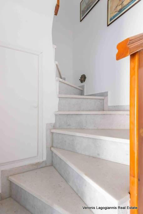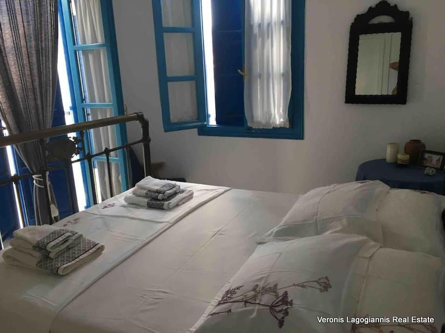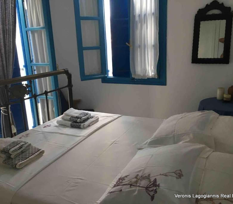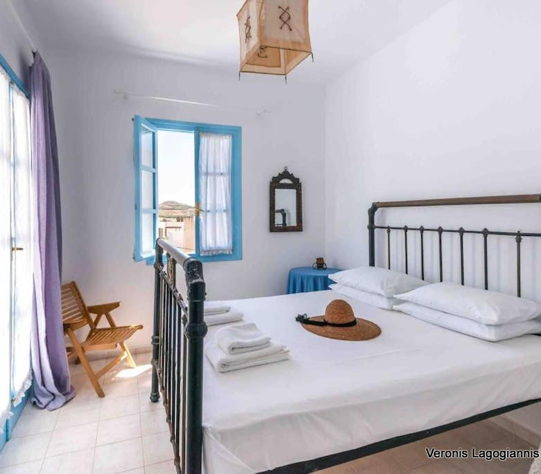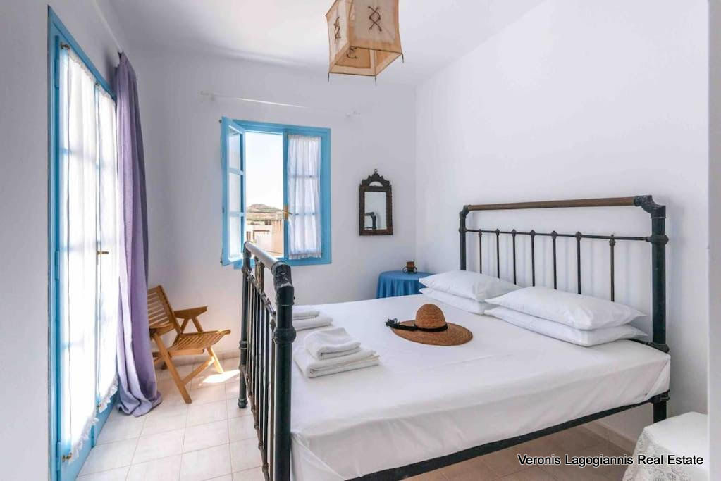 Δύο από τα τρία δωμάτια, βρίσκονται στον όροφο και έχουν πρόσβαση σε ένα μπαλκόνι με θέα στο χωριό.