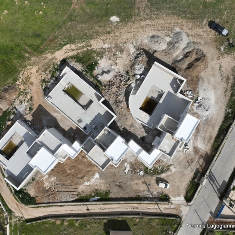Κατοικία Β: Αποτελείται από 3 υπνοδωμάτια, 3 μπάνια, κουζίνα – καθιστικό, μεγάλες βεράντες πισίνα και πέργκολες. 115,30m2