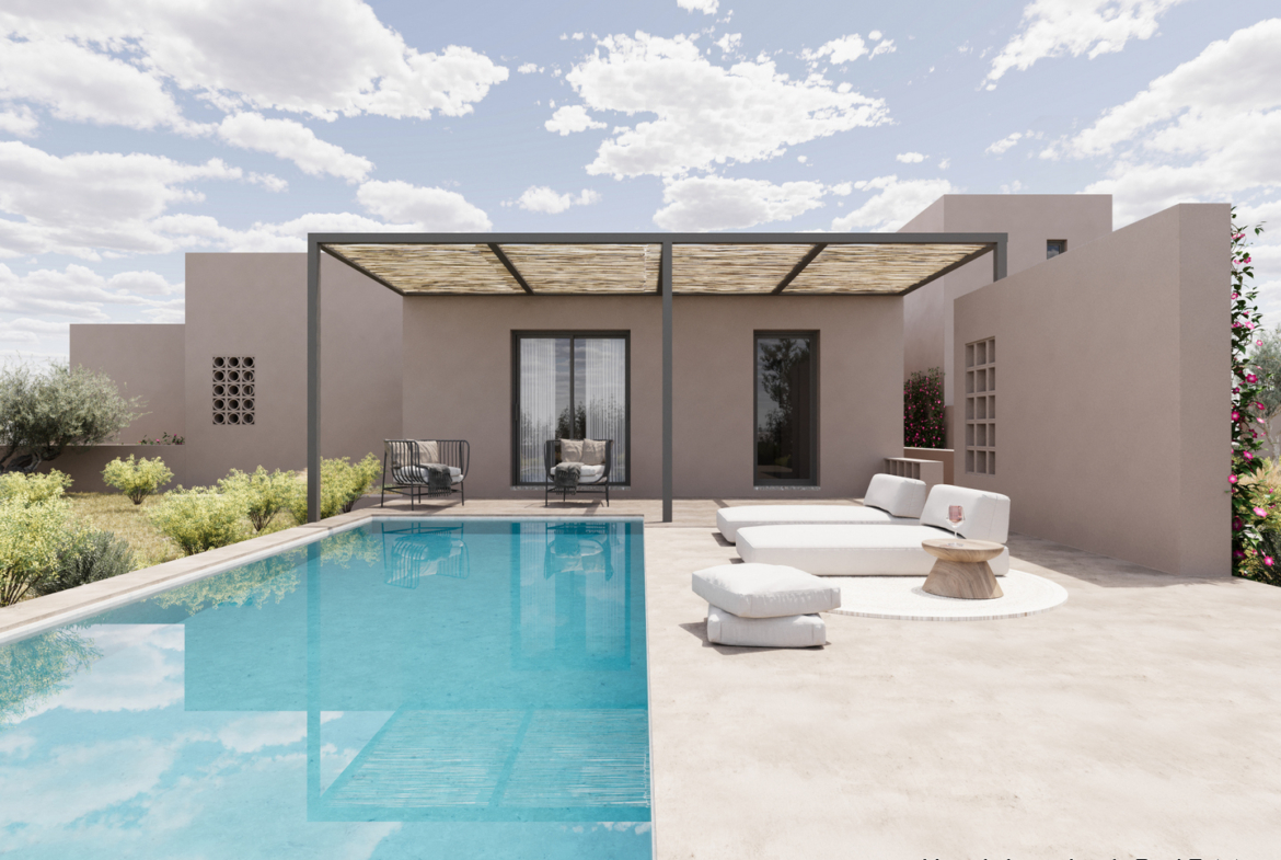 Η γη αποκλειστικής χρήσης που αντιστοιχεί στην κατοικία 3 είναι 412 m2. Στον χώρο αυτό υπάρχει πισίνα 24 m2 και κήπος. Στην κατοικία 3 αντιστοιχεί μια θέση στάθμευσης.