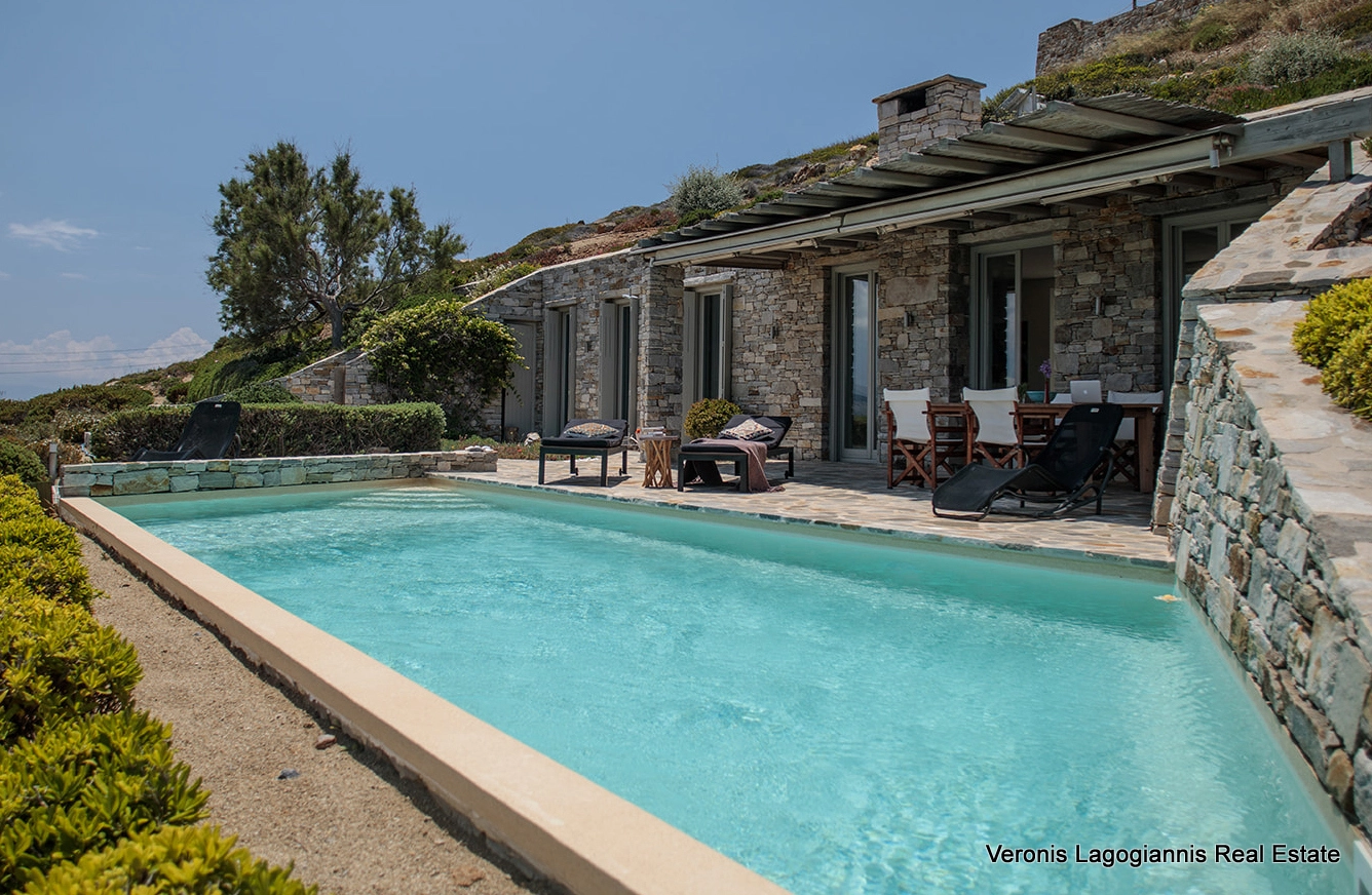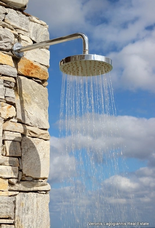 Ο εξωτερικός χώρος περιλαμβάνει ευρύχωρη βεράντα με πισίνα 31 τ.μ., ξαπλώστρες, μεγάλο τραπέζι κάτω από την πέργκολα και χώρο μπάρμπεκιου.