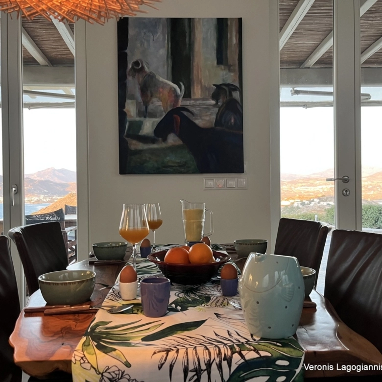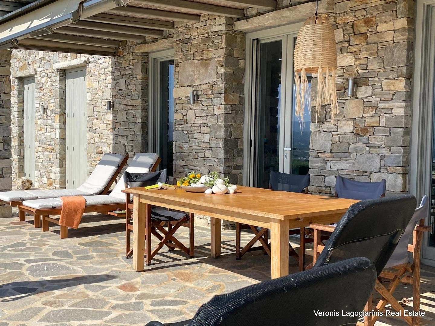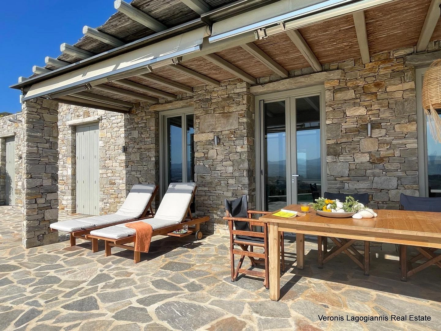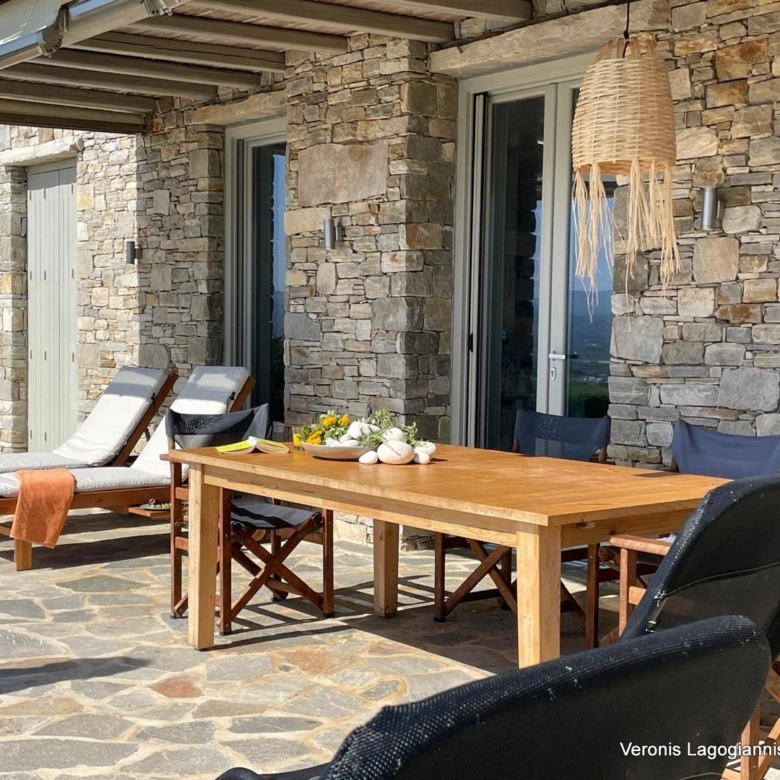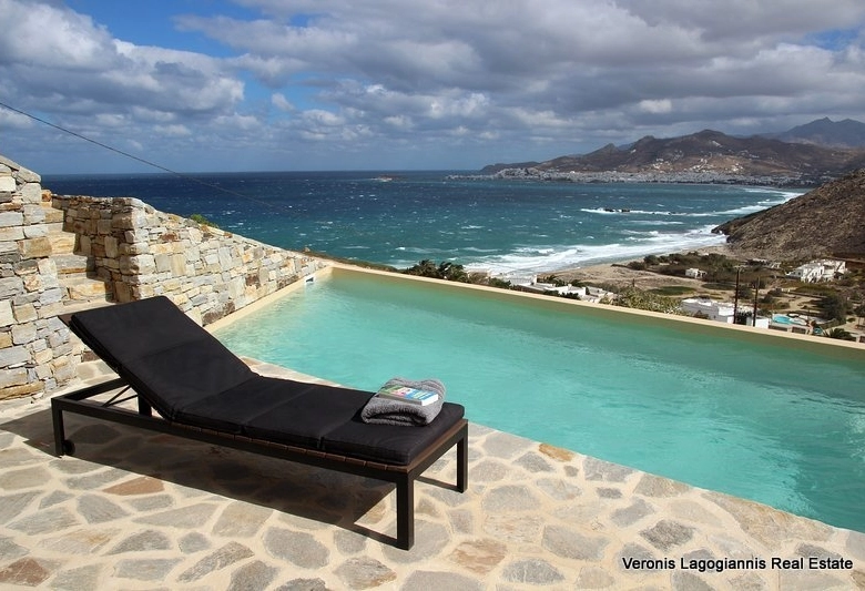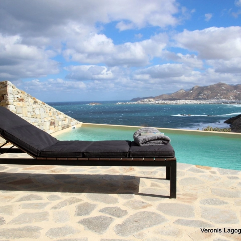 Η κατοικία είναι χτισμένη σε επικλινές οικόπεδο και προσφέρει ανεμπόδιστη θέα στη θάλασσα, τη Χώρα της Νάξου και άλλα Κυκλαδονήσια.