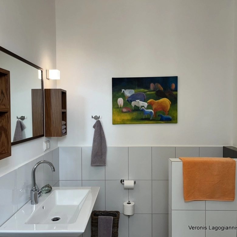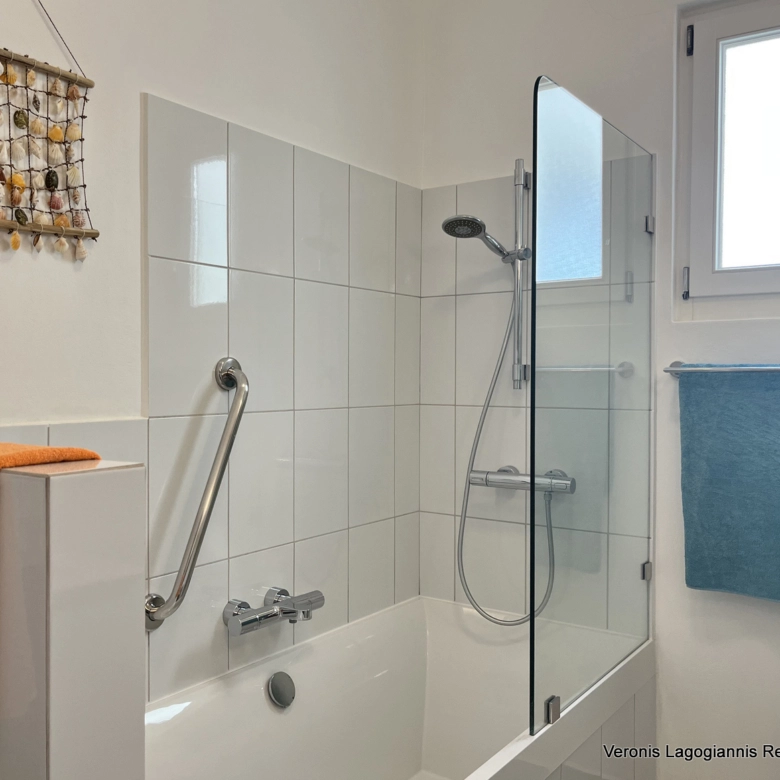 Το κύριο υπνοδωμάτιο διαθέτει ιδιωτικό μπάνιο, ενώ το δεύτερο υπνοδωμάτιο έχει πρόσβαση σε ξεχωριστό μπάνιο.