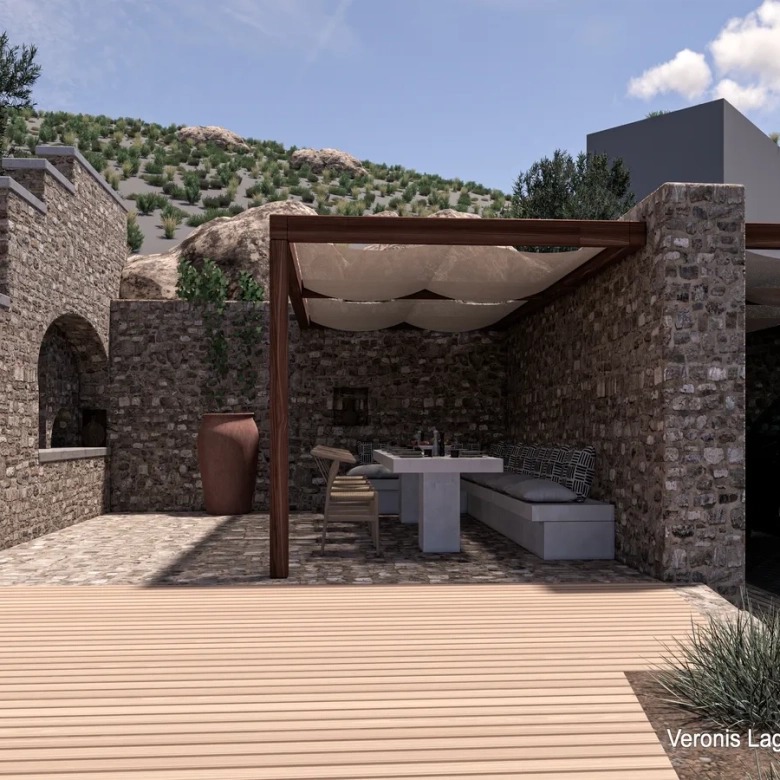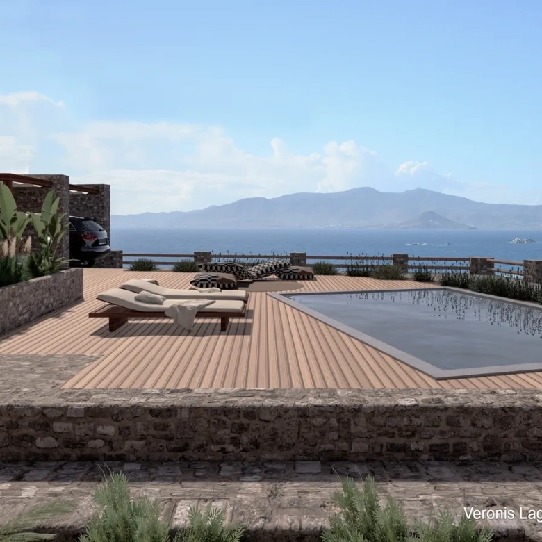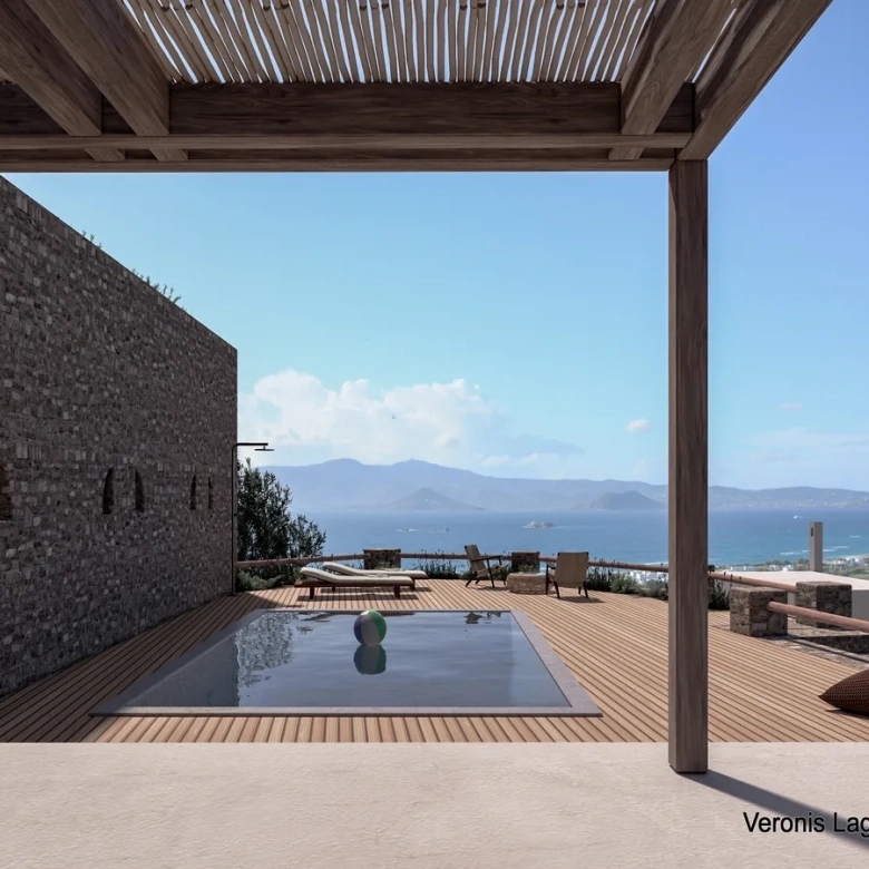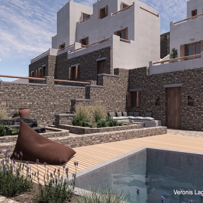 Είναι χτισμένη σύμφωνα με την κυκλαδίτικη αρχιτεκτονική και με άριστη ποιότητα υλικών.