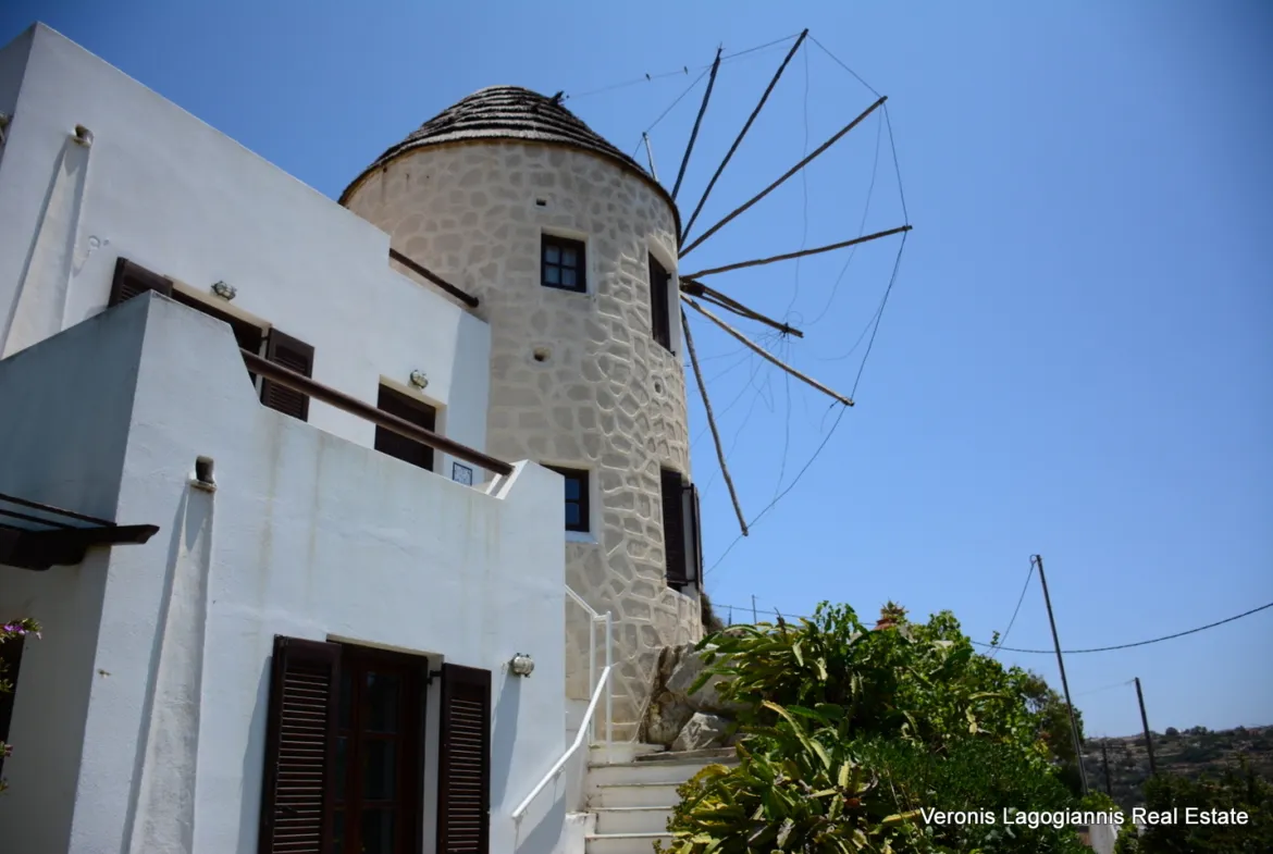 Στην περιοχή του Αγίου Αρσενίου διατίθεται προς πώληση μια απ’ τις χαρακτηριστικότερες κατοικίες του Νησιού γνωστή και ως ο Ανεμόμυλος με συνολικό εμβαδόν 130m2.