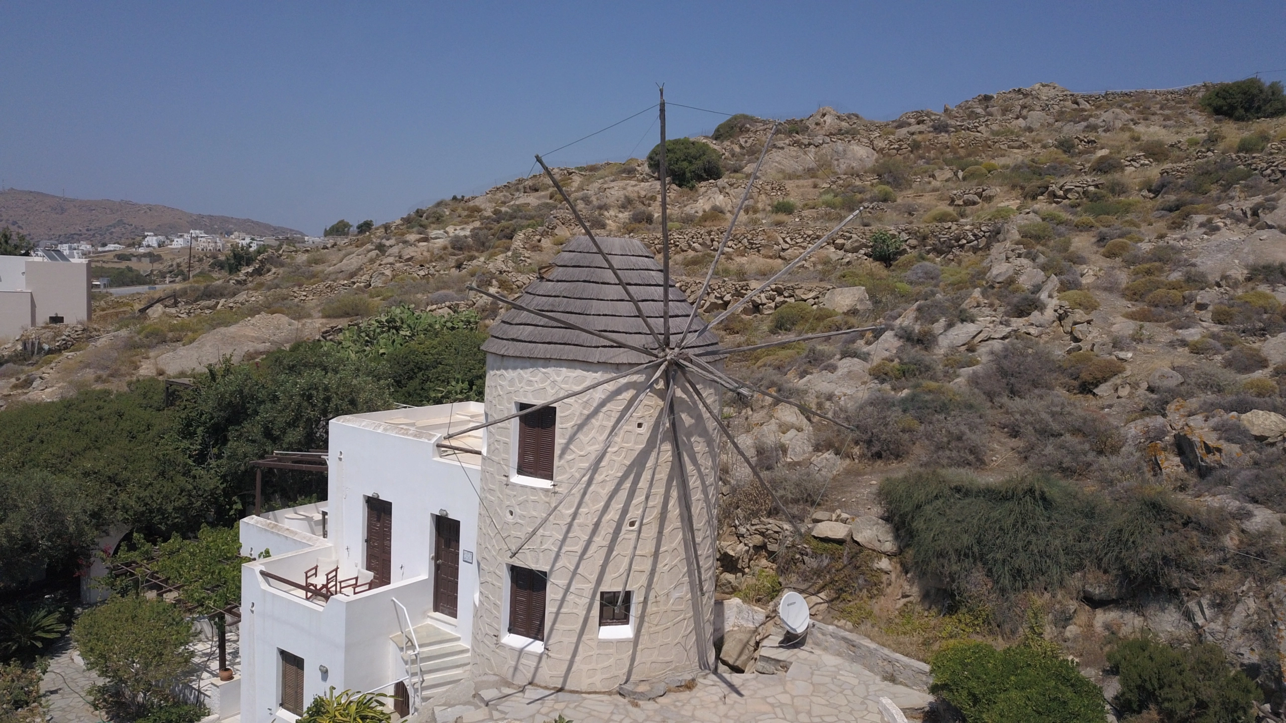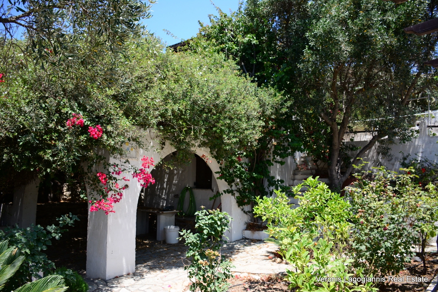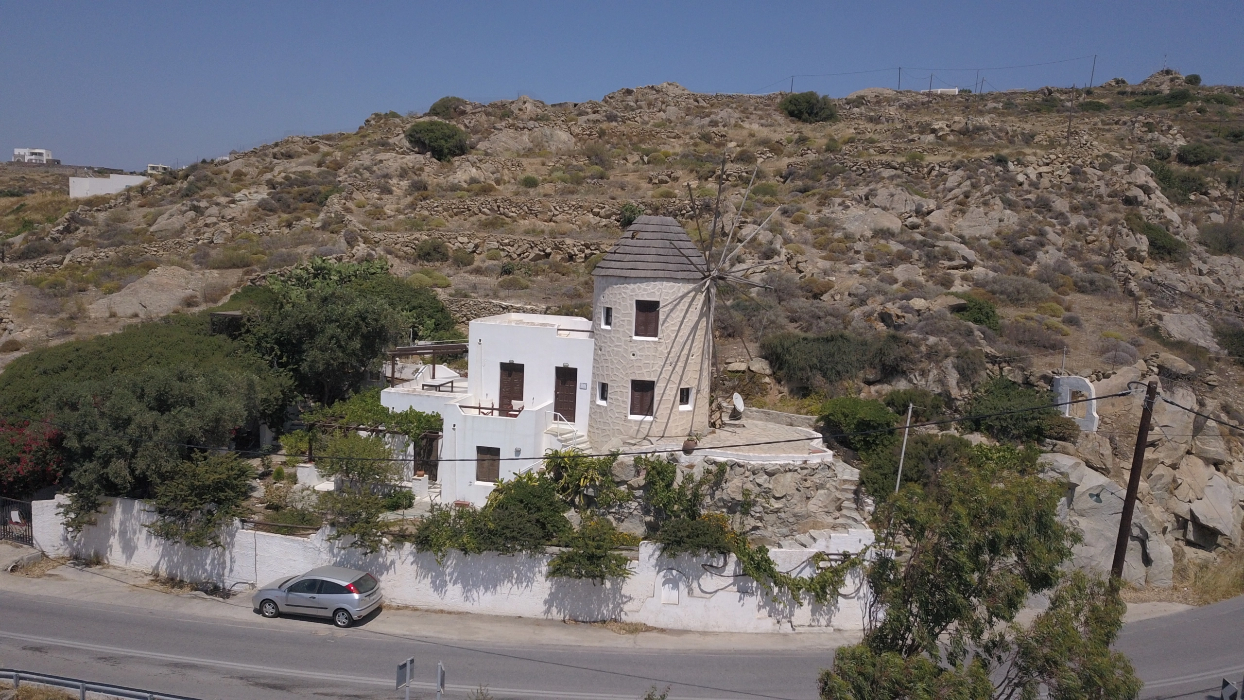 The plants, trees and the panoramic view towards the village of Agios Arsenios as well as towards Stellida, Chora and the sea create a unique environment!