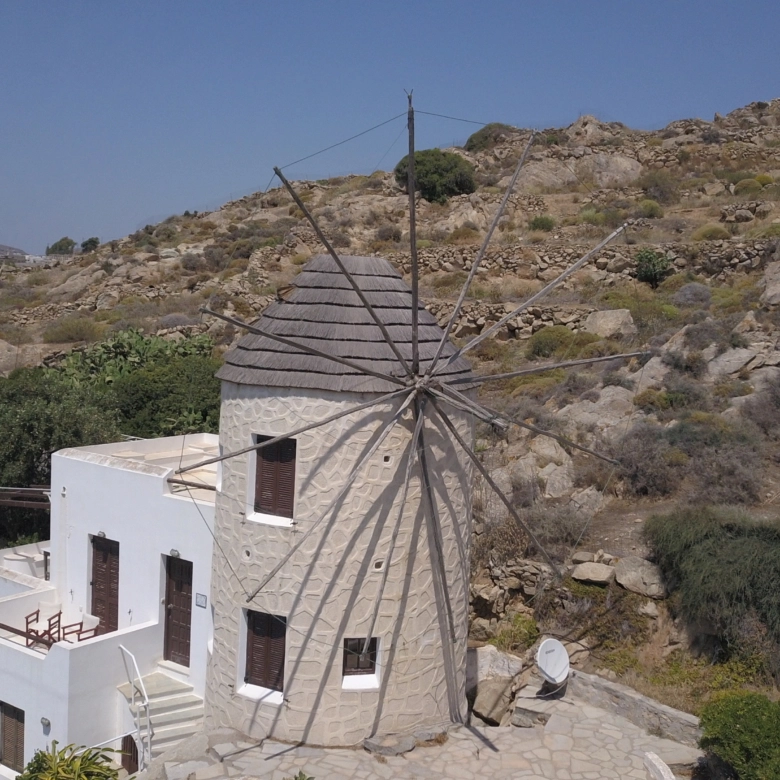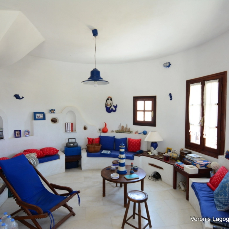 In the area of Agios Arsenios, one of the most characteristic houses of the island, also known as the Windmill, is available for sale with a total area of 130m2.