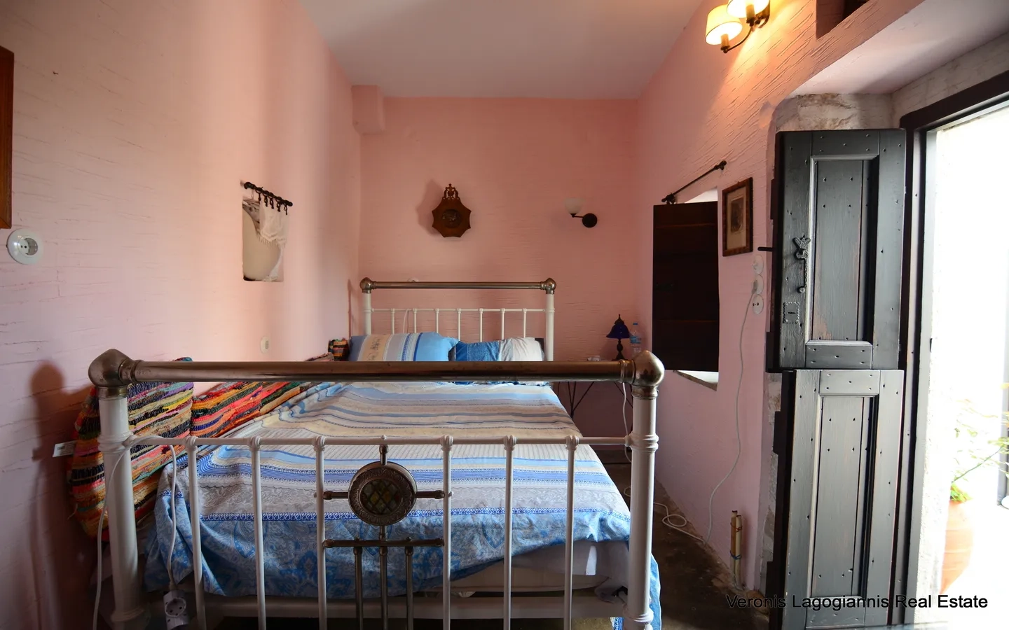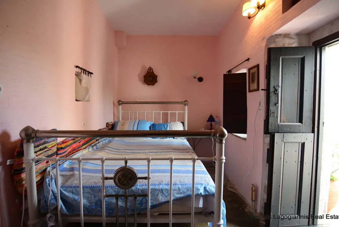 Filoti Naxos, a traditional house of 120 m2 is available for sale. The house consists of a basement, a ground floor and a first floor, with an entrance from the street to an internal courtyard on the ground floor, an external staircase to the upper floor and two terraces on the first floor. The basement has two small rooms which used as storage rooms. Access to the basement is via an internal staircase through the ground floor living room and externally via a separate entrance. The ground floor consists of two spaces: One space has a hall, a bedroom and a wc, and the other an external bedroom. Both spaces have an entrance from the inner courtyard. The first floor consists of a kitchen, a living room and a toilet. There is a built-in double bed and a fireplace. On the first floor there are also two terraces. One is at the entrance of the floor, and the other is at the front of the house and has a very beautiful view. There is no central heating, but two air conditioners. One in the hall on the ground floor and the other in the common area of the first floor. The water is heated by an electric heater. The old house (basement and ground floor) was partly built before 1900 and partly in 1936. Later, in 2004, the existing house was restored and the first floor was added. The plot has an area of 80.09 m2 and the house is 94 m2 ground floor and first floor and 26.07 m2 the basement.