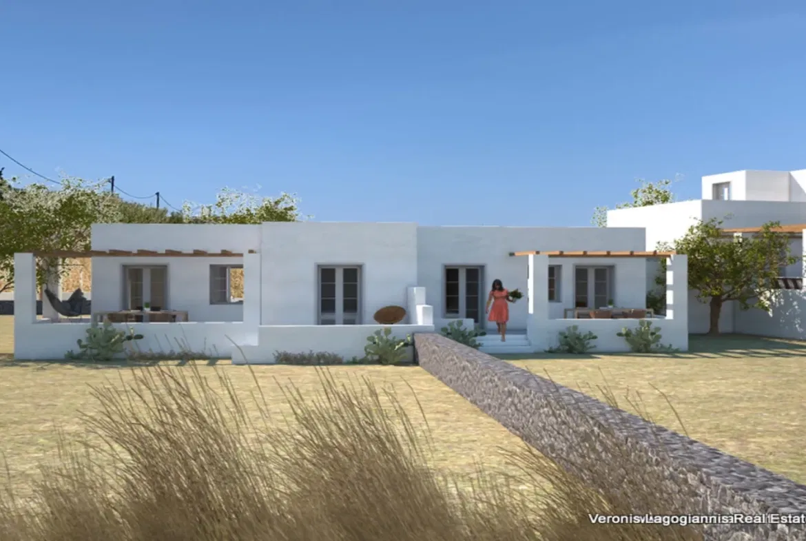 Kastraki, Naxos, for sale houses with one, two or to three bedrooms. They consist of a living room -kitchen, two to three bathrooms and a storage area. Each residence has a garden with a seating area and BBQ. They are located at a distance of 1 km from the beach of Kastraki. Prices: