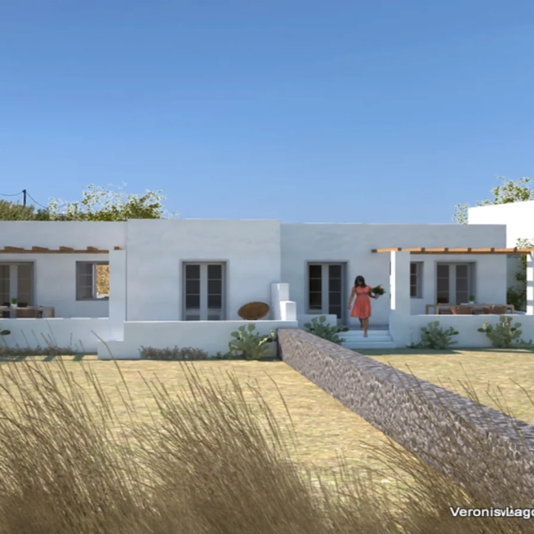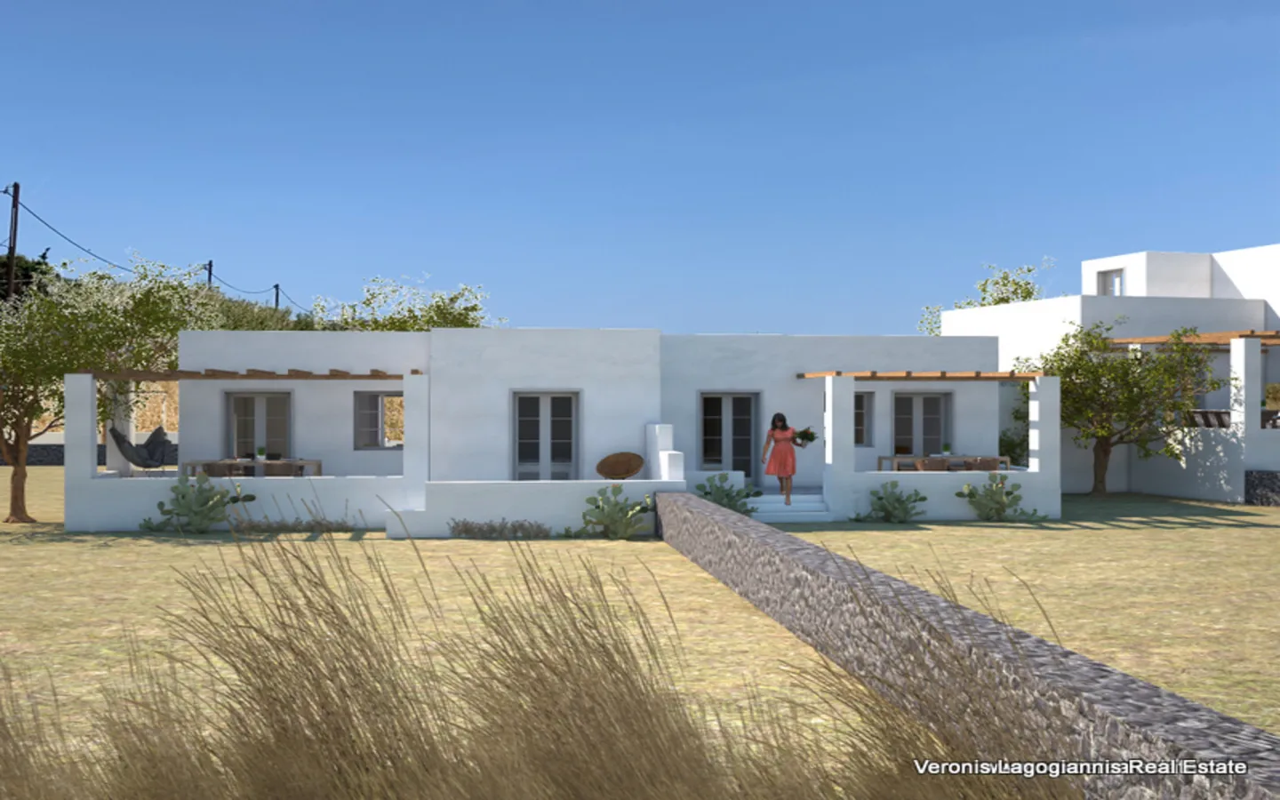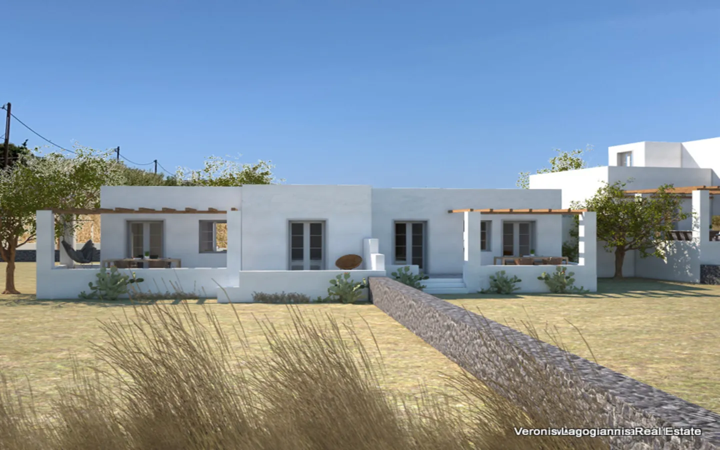 Kastraki, Naxos, for sale houses with one, two or to three bedrooms. They consist of a living room -kitchen, two to three bathrooms and a storage area. Each residence has a garden with a seating area and BBQ. They are located at a distance of 1 km from the beach of Kastraki. Prices: