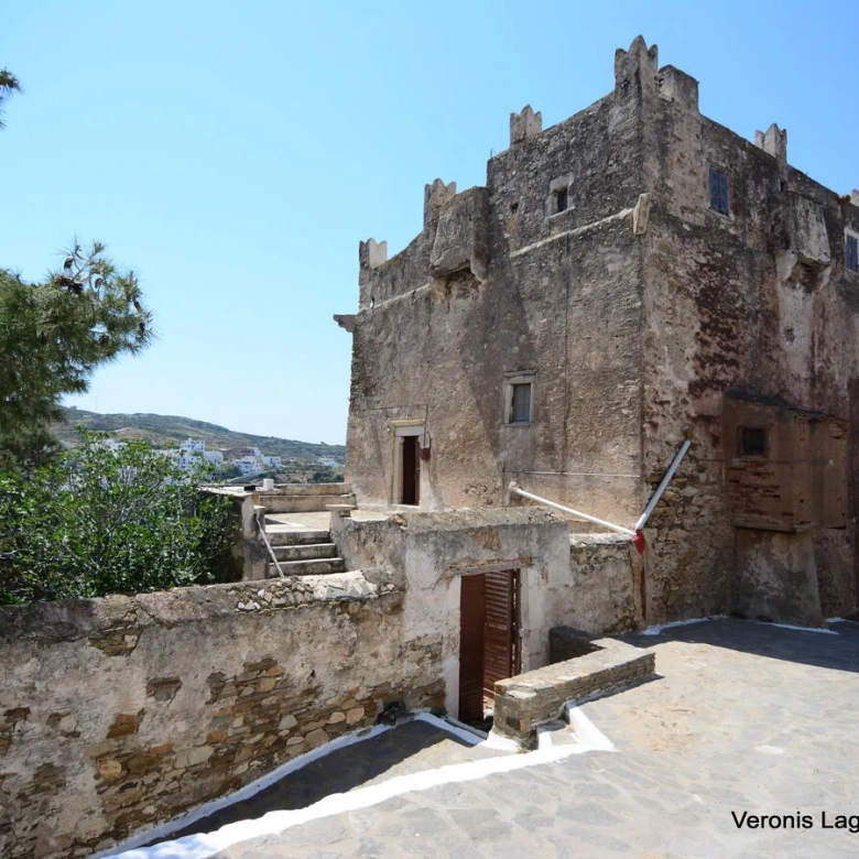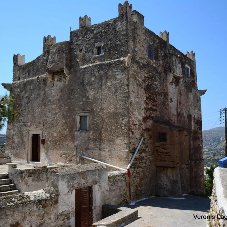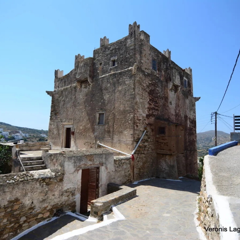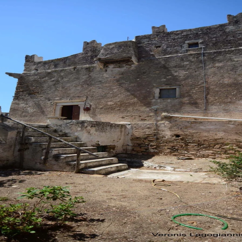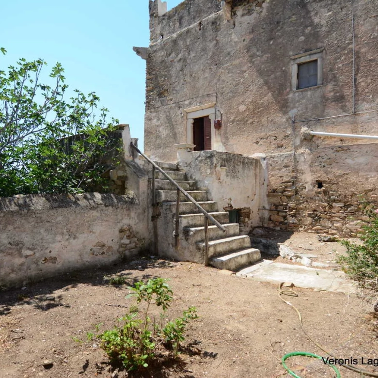 A Venetian Tower of 296 m2 , dating from the 14th Century, is available for sale at Kournochori, Naxos. The Tower hulks above the village at the top of the hillside, and because of its location and position seems to dominate the valley. It consists of three levels. The first level is being used as a storage space. A hatch joins this level with the second one. For the progression to the second level, you have to cross the courtyard that leads to the belvedere and the great main entrance of the second level. The second level, consists of a salon, a bedroom, a kitchen and a bathroom. In the big salon there is a wooden staircase that leads to the third level. The third level consists of two bedrooms and a bathroom. It also has a flat roof with unobstructed view. The total area of the plot is 363 m2. It needs partial renovation. The distance from Naxos Town is 9 km.