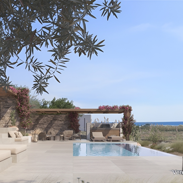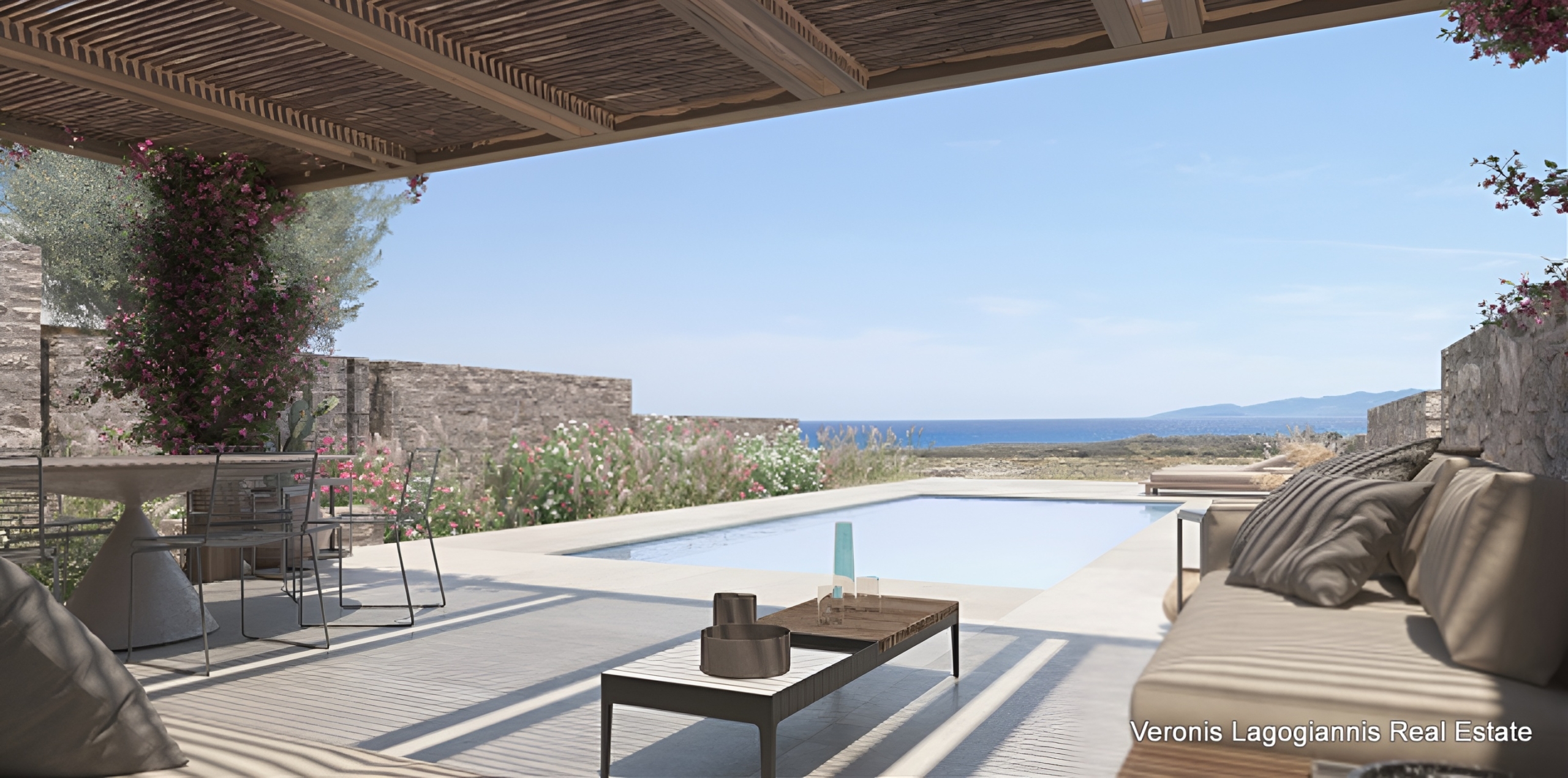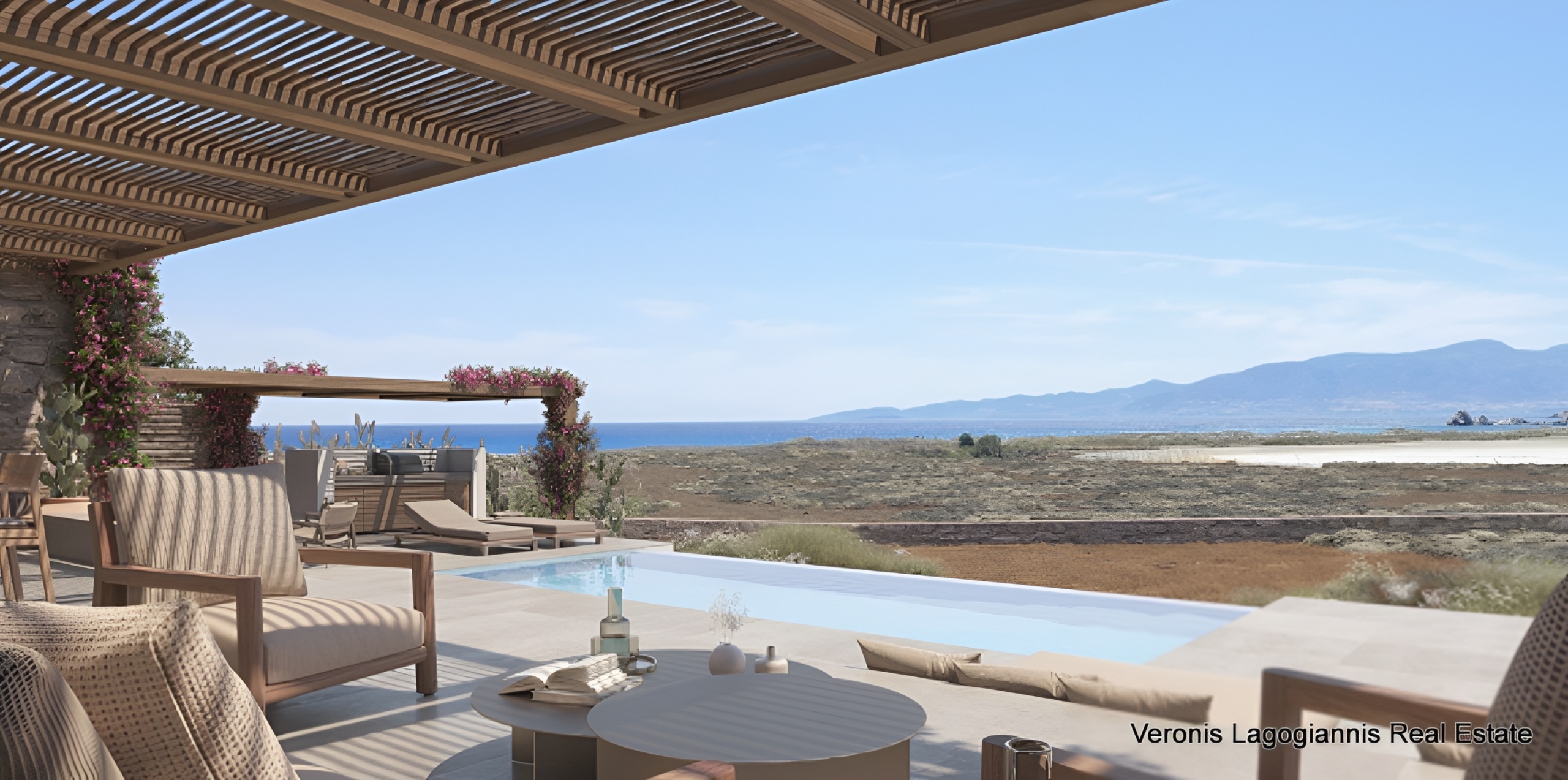 On Mikri Vigla beach, Naxos, luxury detached houses are being sold under construction on a 6,200m2 plot.