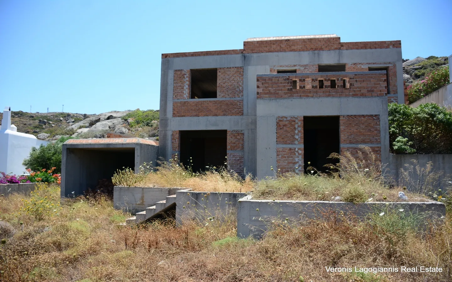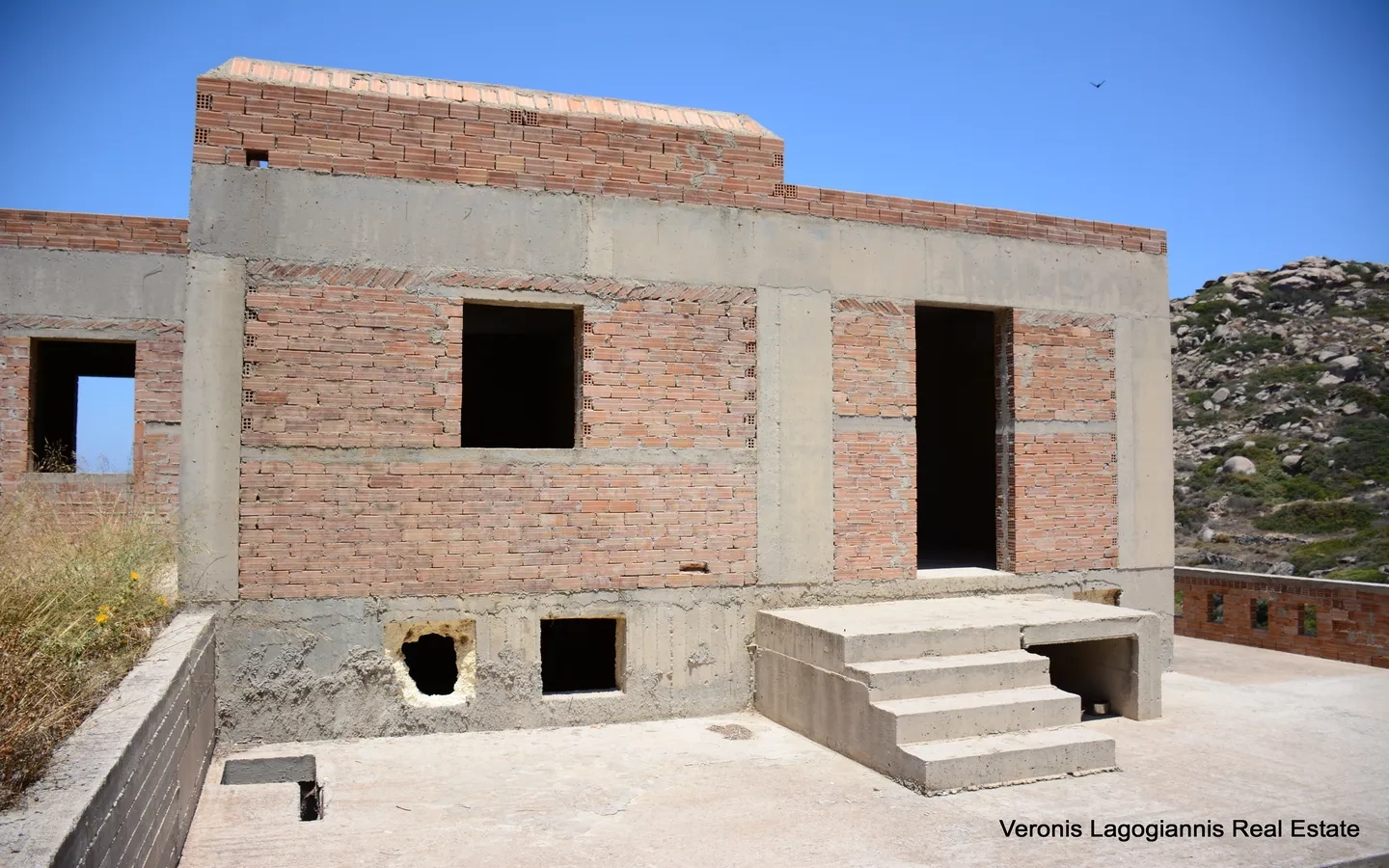 Orkos Naxos, a house of 200 m2 with a wonderful panoramic view of the sea is available for sale. The house is in the brick stage and the construction will be completed in 12 months from the date of purchase. Inside the house consists of 5 bedrooms, 4 bathrooms, a kitchen and a living room. Outside there are large verandas, a garden and a swimming pool. The house located 600 m. from the magnificent beach of Orkos and 6 km from Naxos Town.