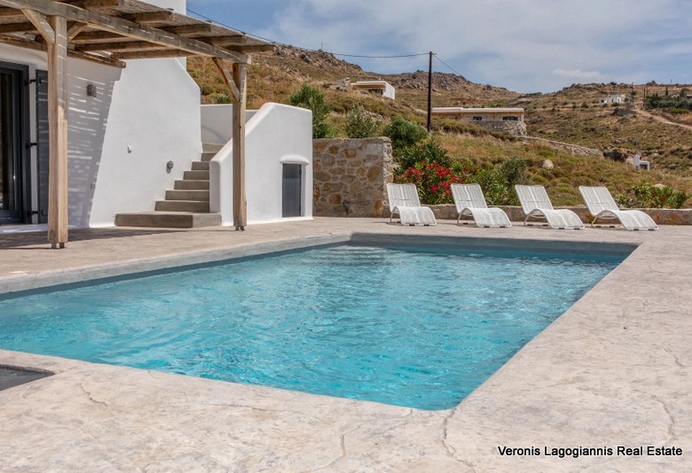 Outside of each house there is a large swimming pool. The area around the pools has been landscaped with a pergola, sunbeds, a built-in bed and a garden so that the owners can enjoy the view of the sea and the sunset . In the backyard there is a parking space for at least 4 cars.