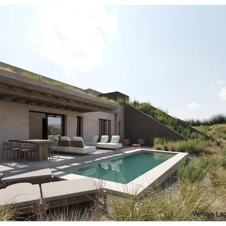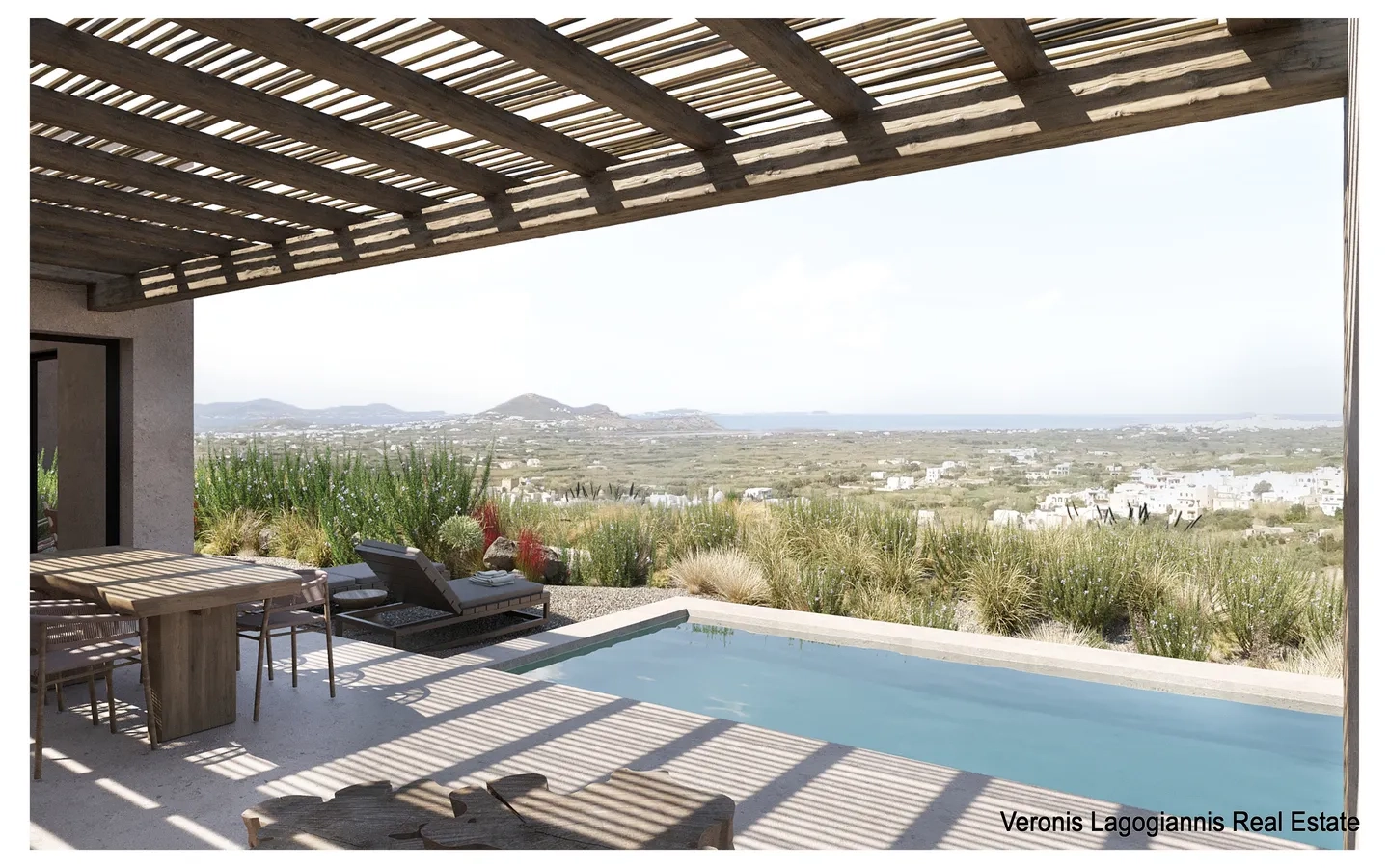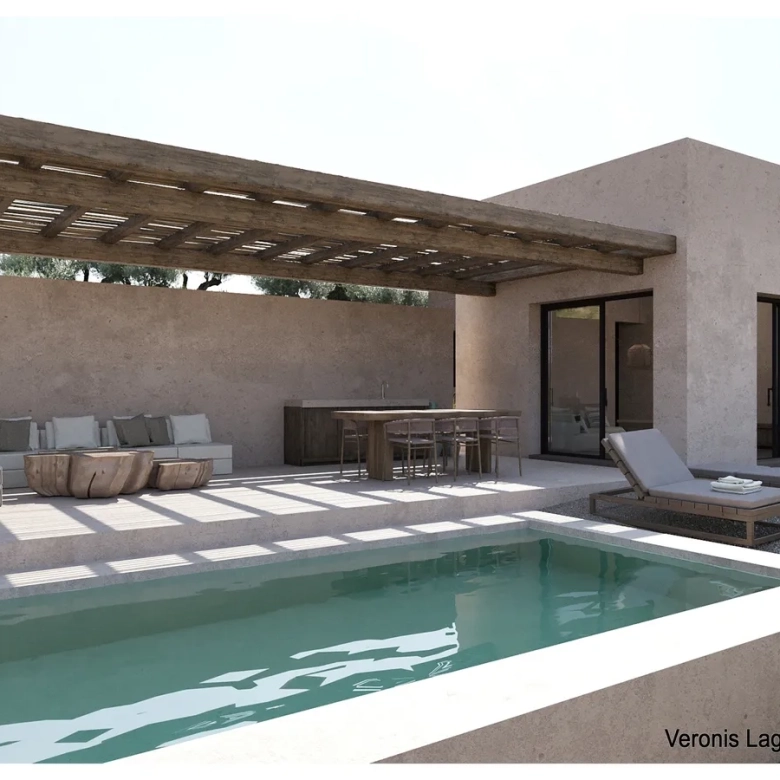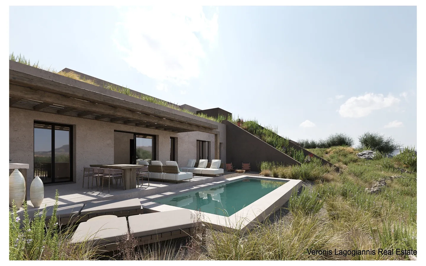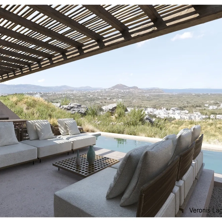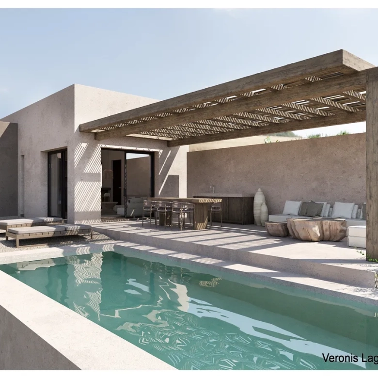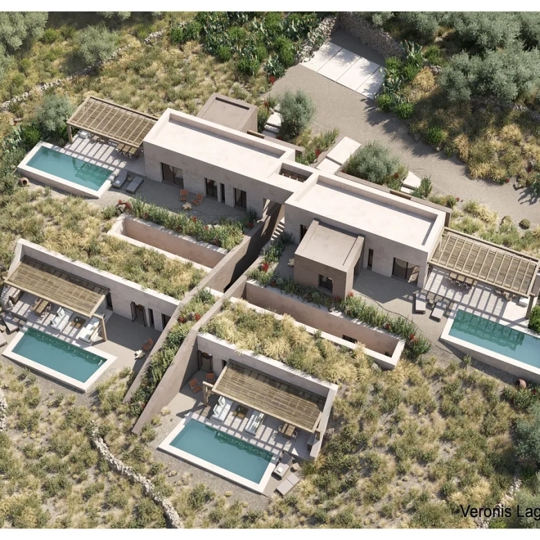 Each residence has a private pool, large pergolas and 2 parking spaces. The distance from Naxos Town is only 8 km, while the neighboring village of Vivlos with its windmills is 3 km away. The famous beaches of Agios Prokopios and Agia Anna are 5 minutes away by car. At a distance of 7 km is the island’s airport. Code: 640507