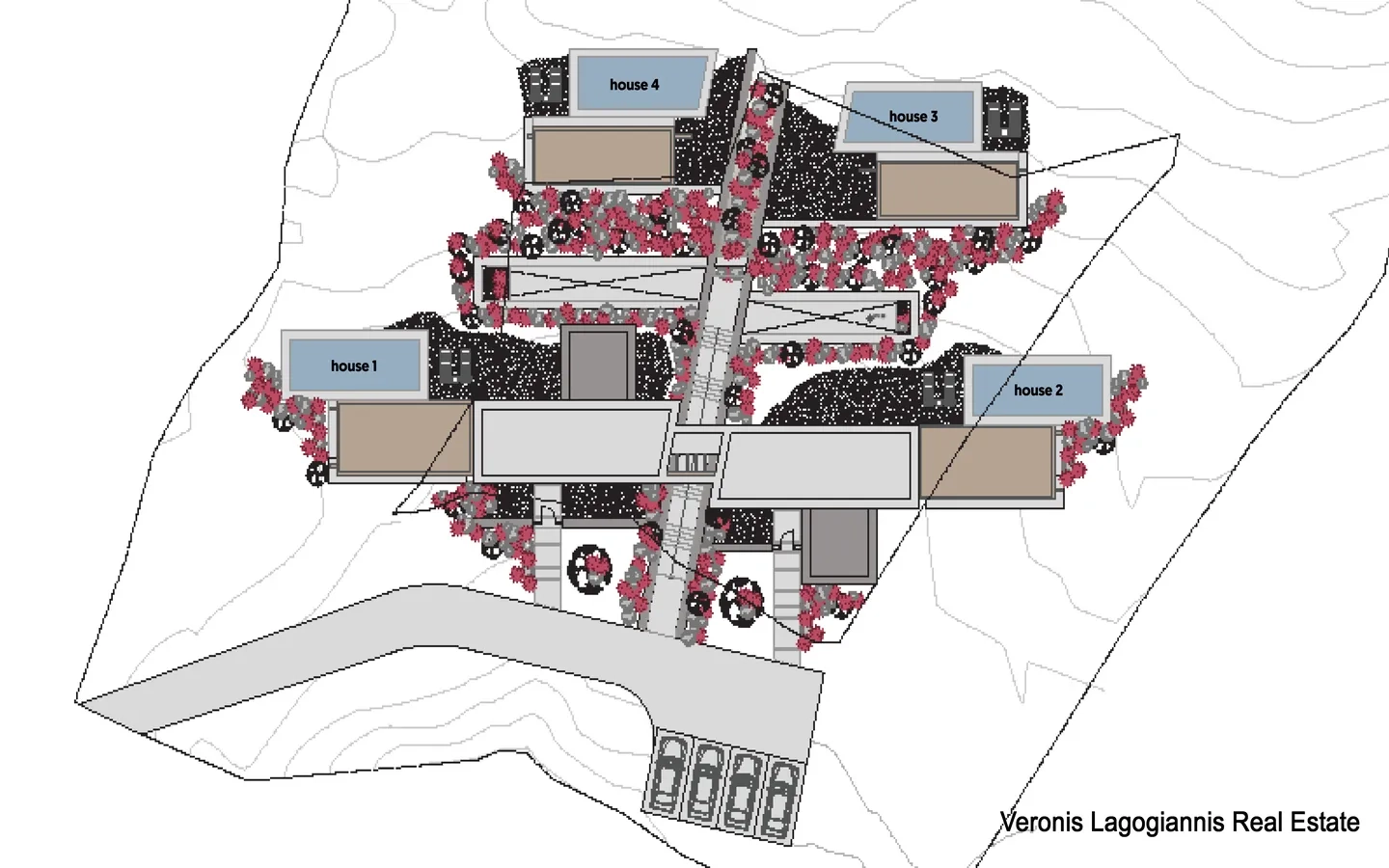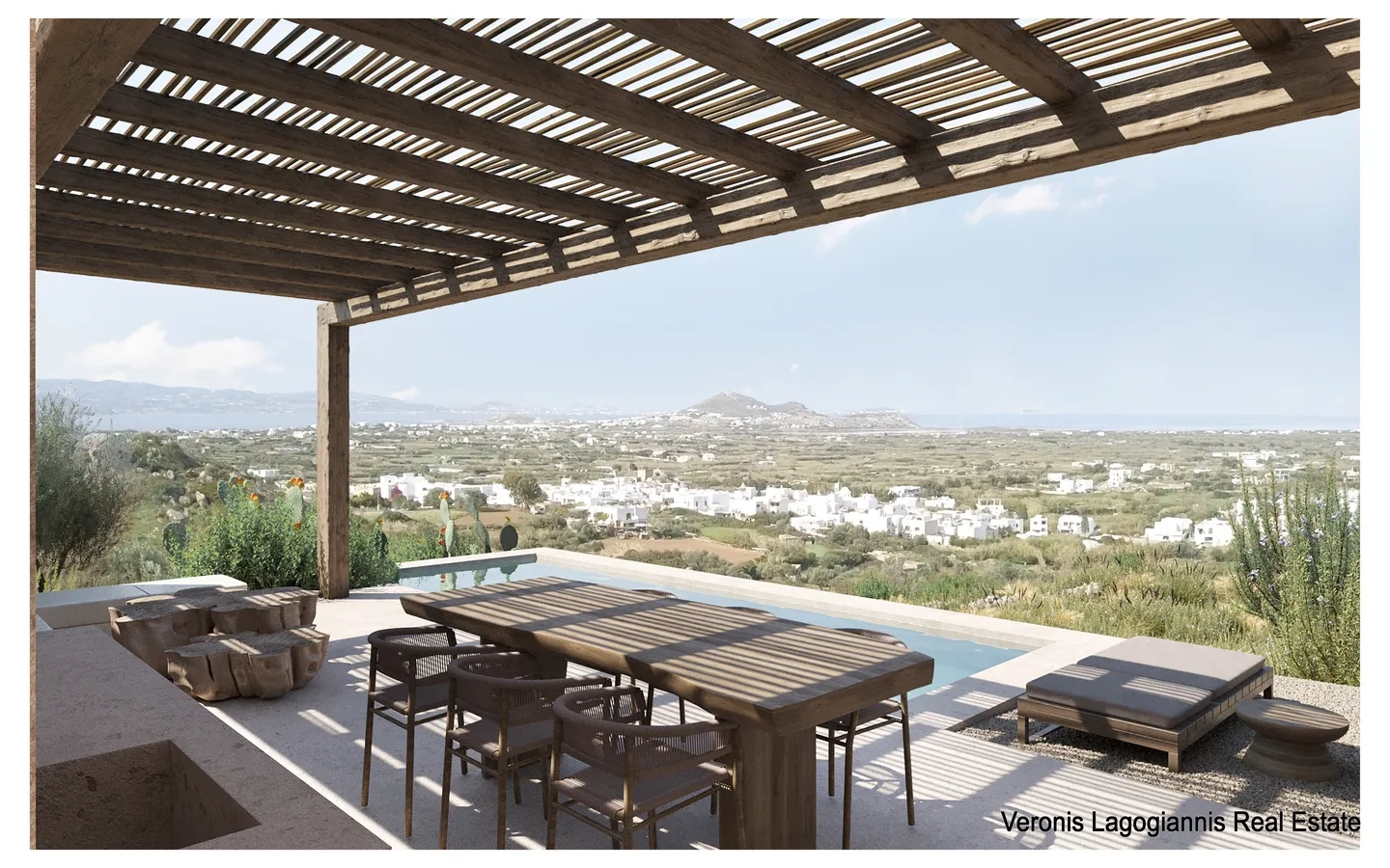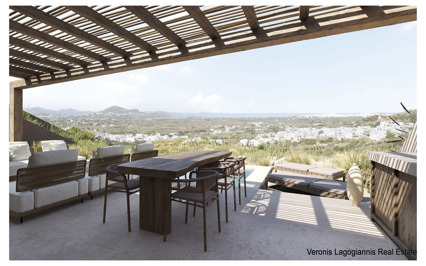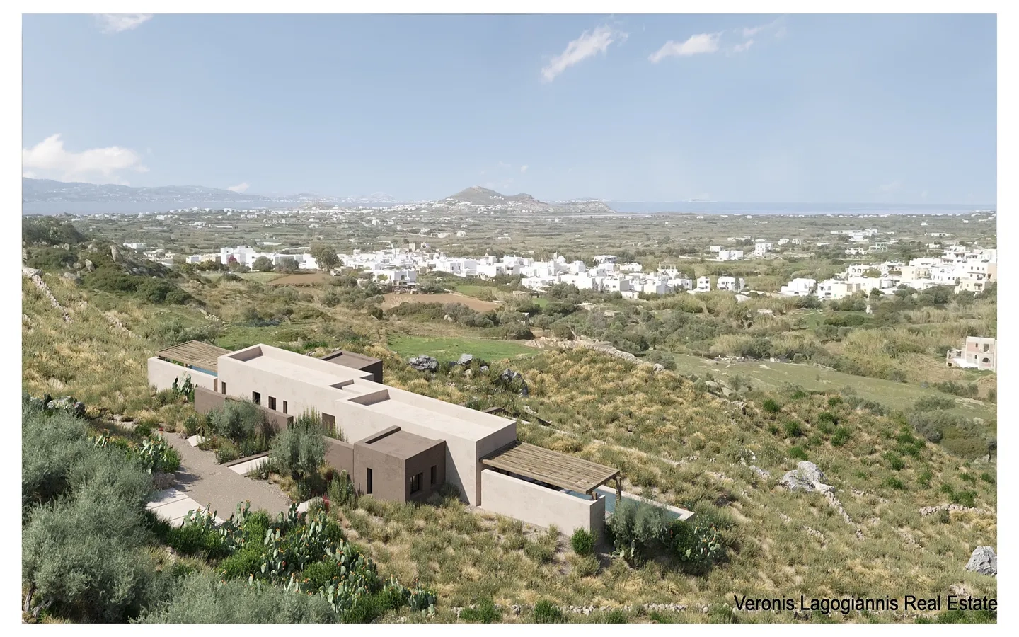 The hills of Plaka in Naxos combine wonderfully the panoramic view, the short distance from the sea and Naxos Town. On one of these hills, in a quiet location of 4,000 m2, with easy access and a magnificent view, 4 modern houses are for sale.