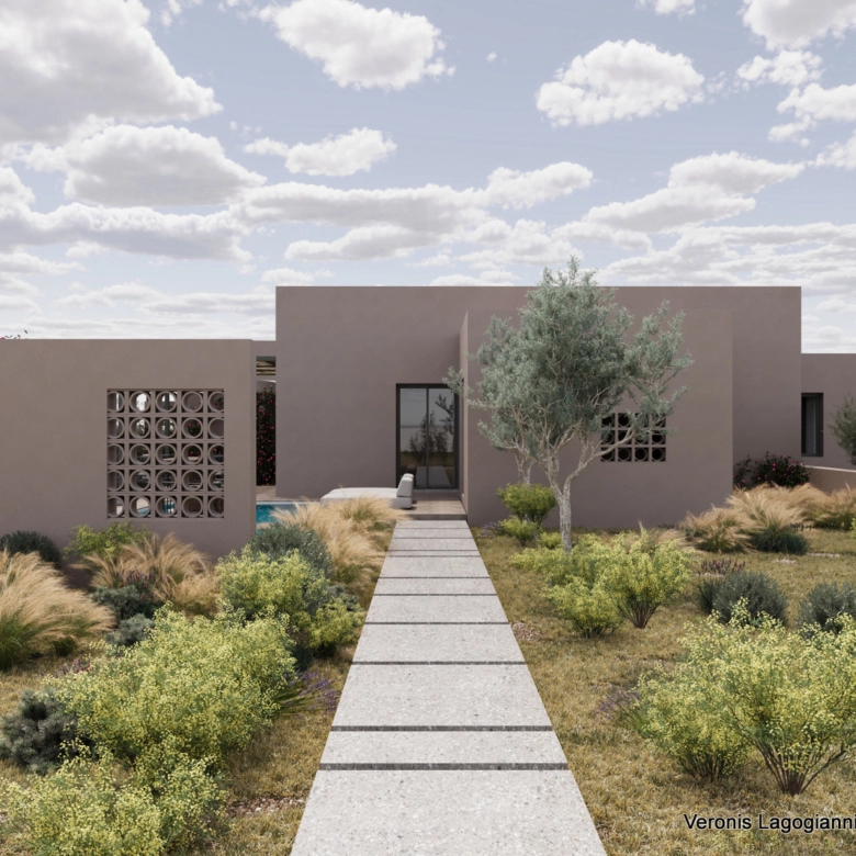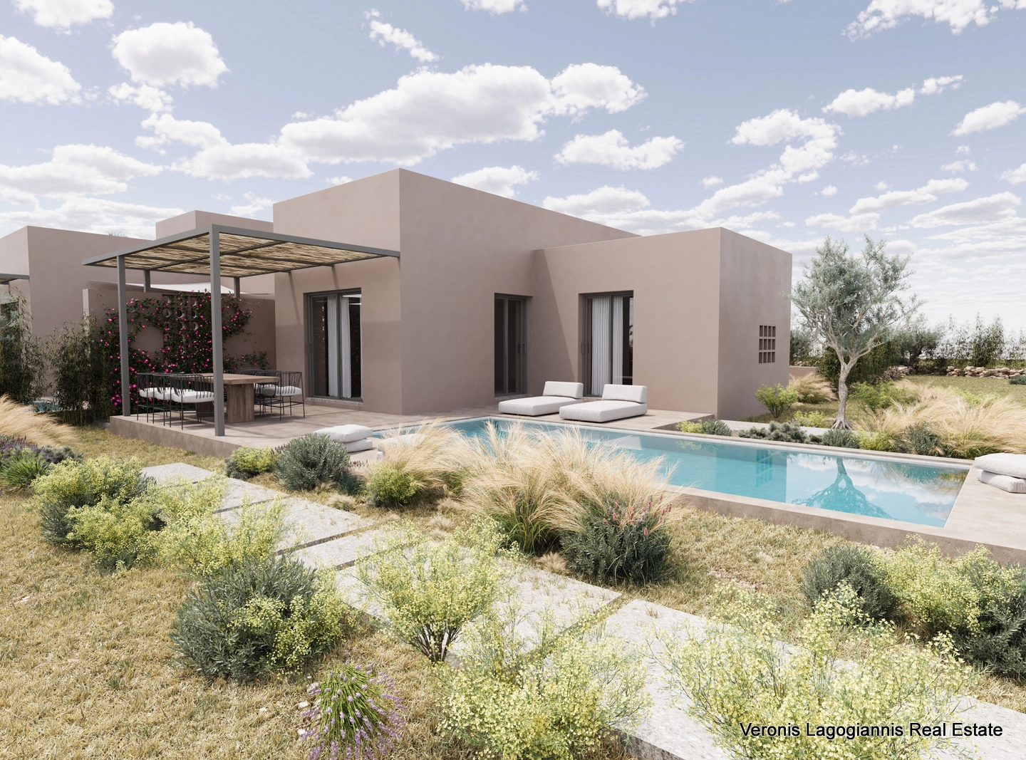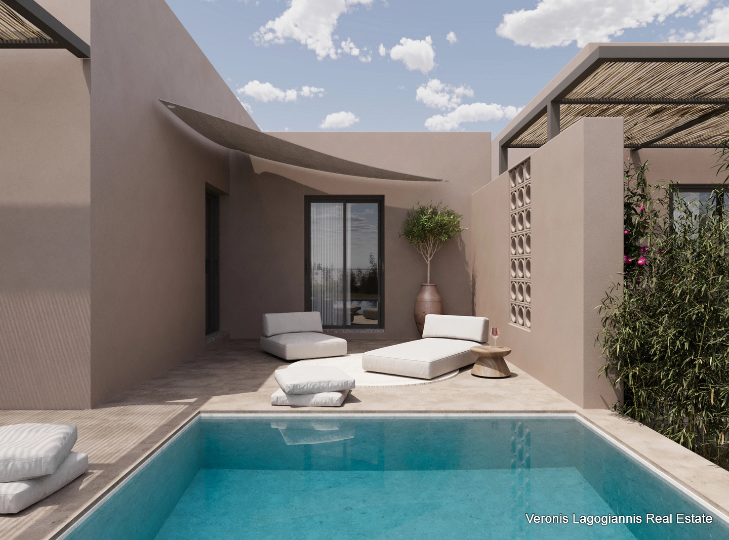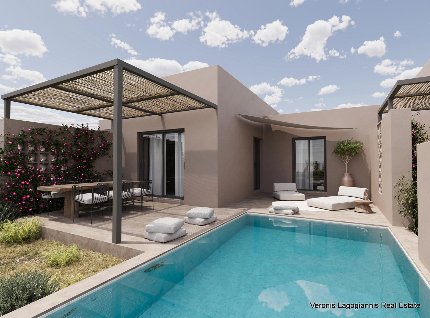 The exclusive use land is 412 m2. In this area there is a swimming pool of 24 m2 and a garden. A parking space corresponds to house 3.