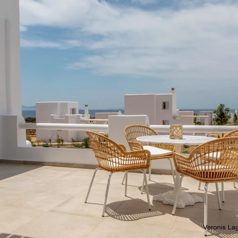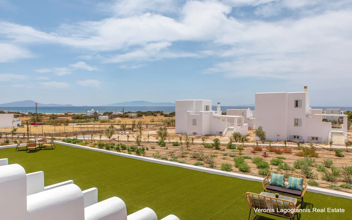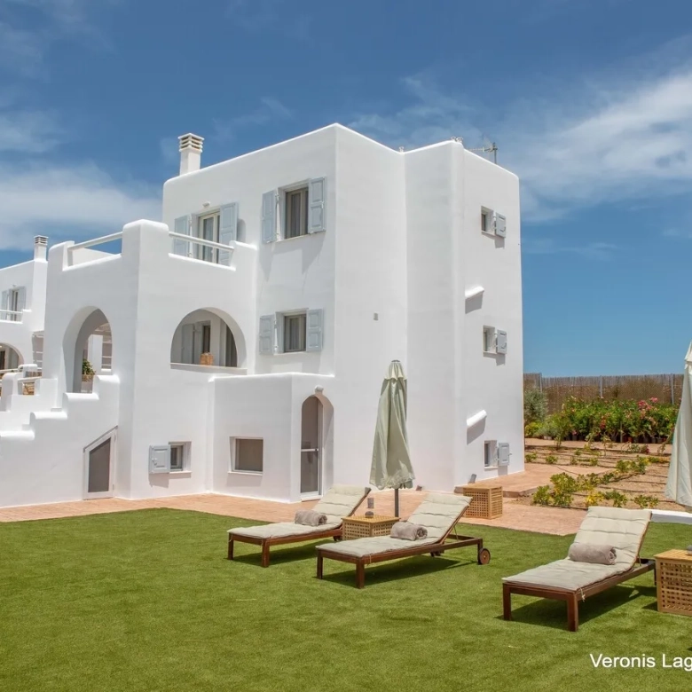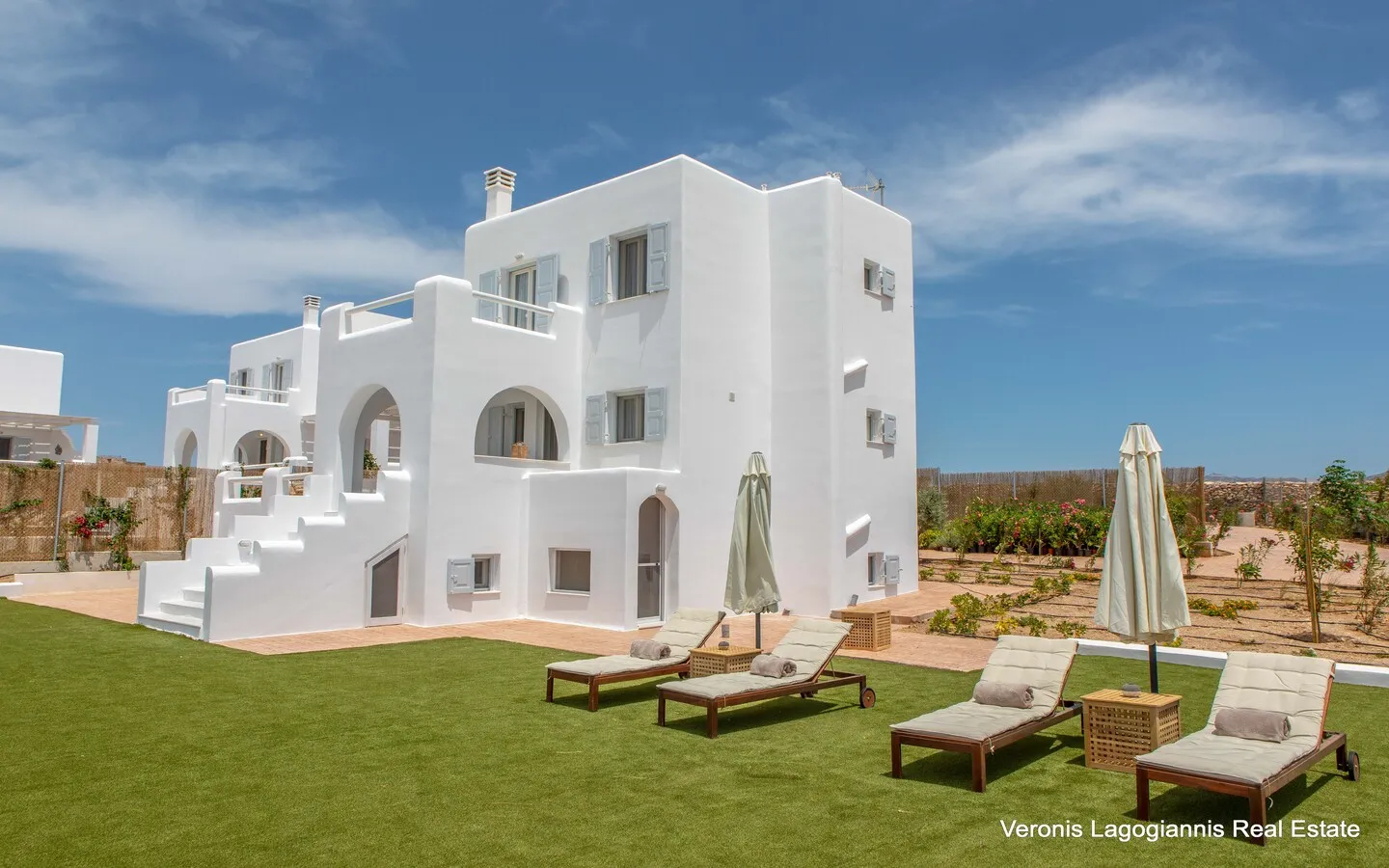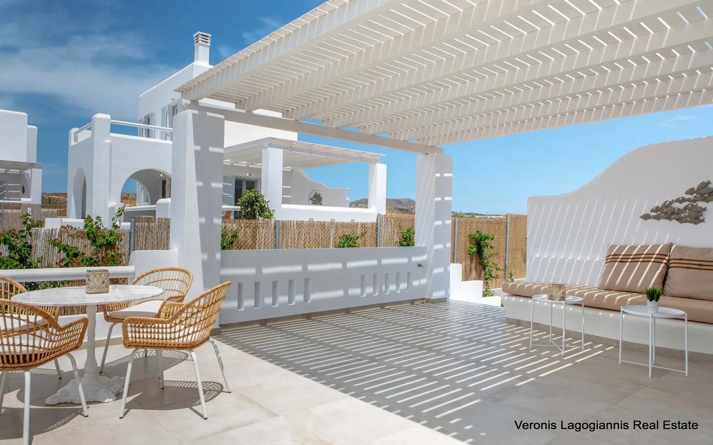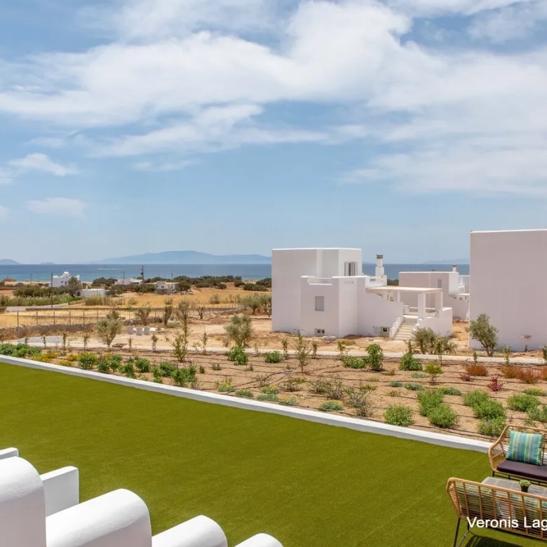 In just a few meters from the beach in Pyrgaki you can find autonomous holiday houses from 142 m2 to 162 m2 . The houses are built on three levels and harmoniously combine the simplicity of Aegean Architecture with the modern construction and the modern perception of comfortable and functional spaces. They consist of 4 bedrooms. Each house has a landscaped garden of over an acre with pool. Traditional dry stone, built in the traditional style of the area, separates the plots from neighboring properties and between them. They are located 150 meters from the sandy beach.