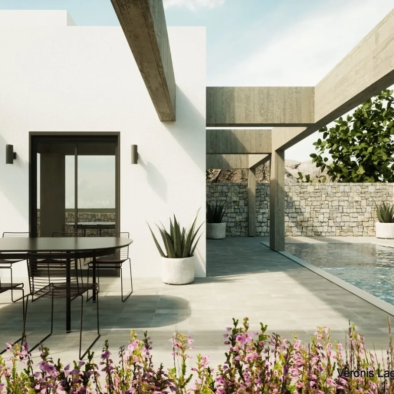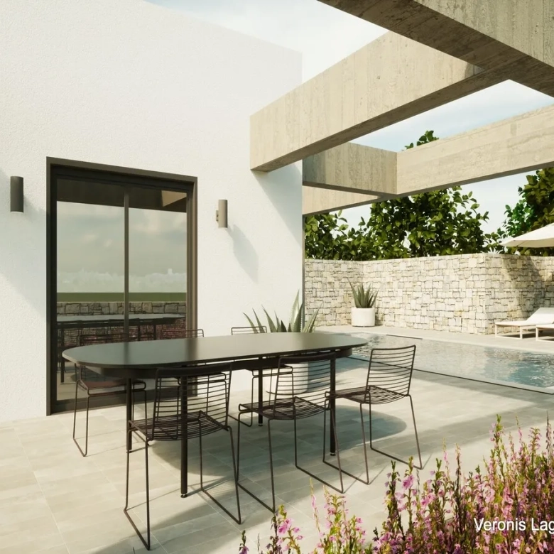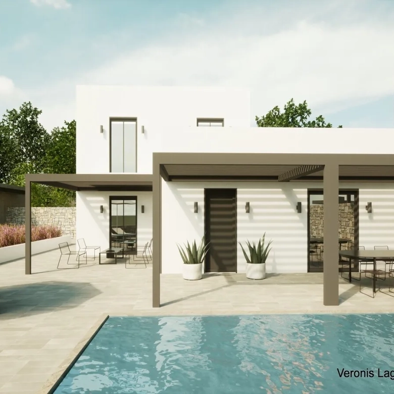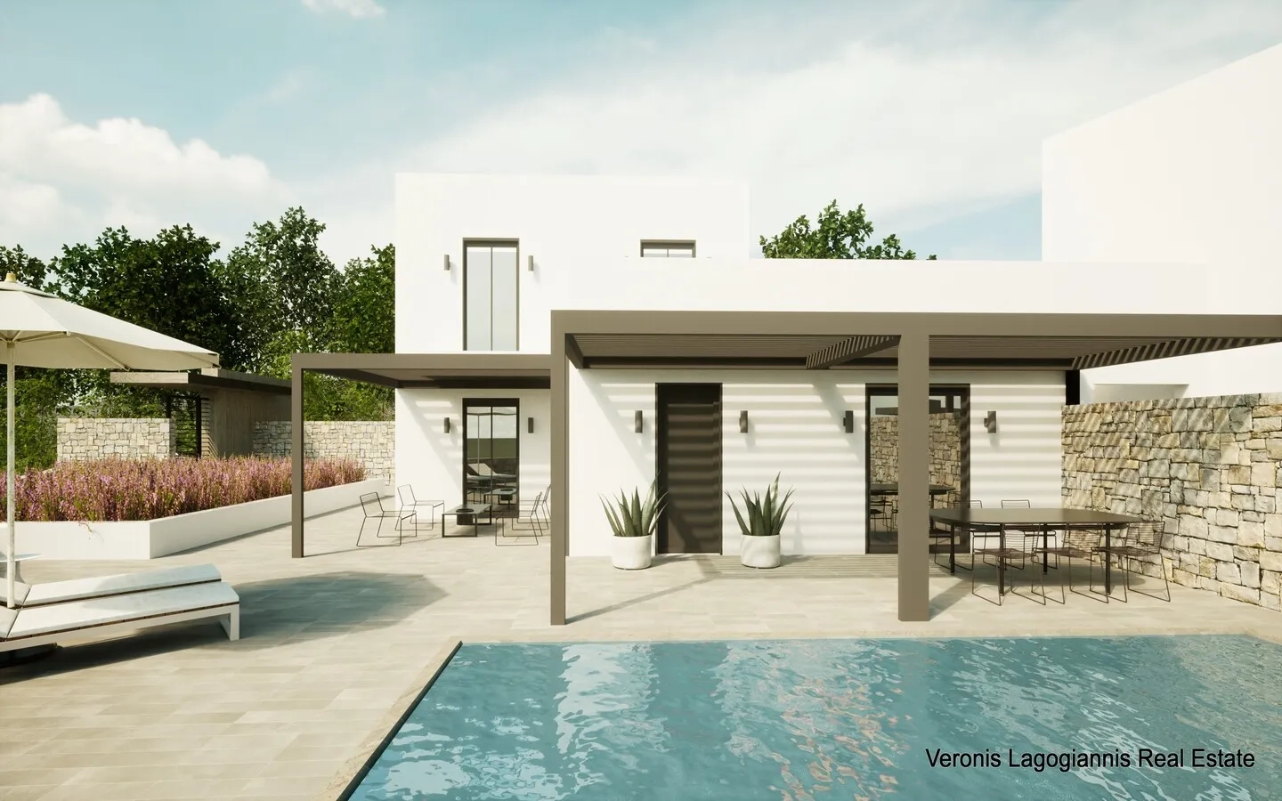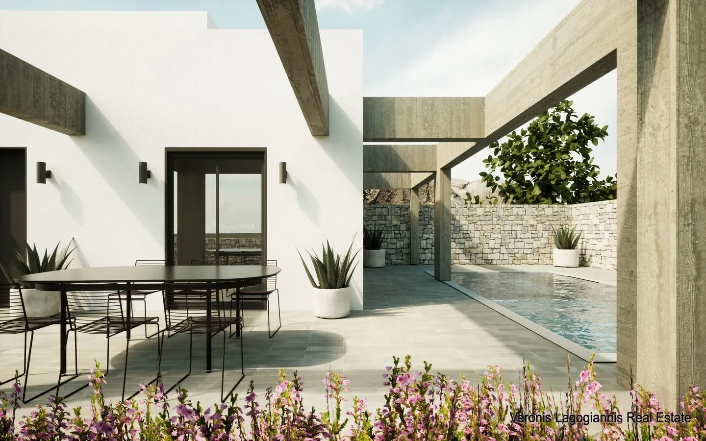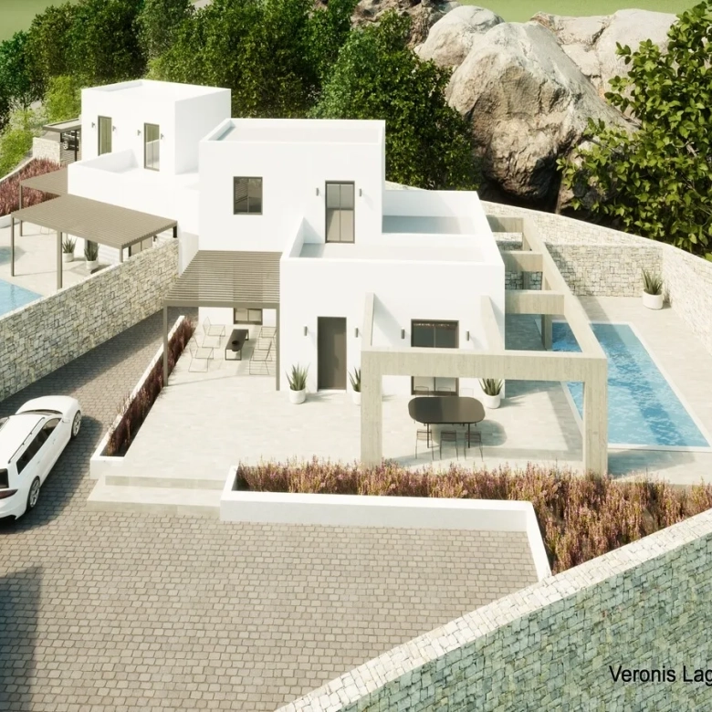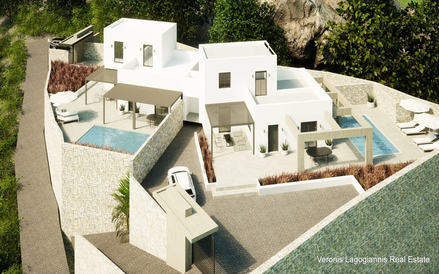 The house is located in a quiet area, 500 m from the traditional settlement of Vivlos and 4 km from the beach. Inside the house consists of 3 bedrooms, 2 bathrooms, a kitchen, a dining room, a living room and a storage space in the basement. The outdoor area is dominated by a swimming pool. Around the pool there is a wonderful garden, a parking area, a rest area and 3 verandas, 2 on the ground floor and 1 on the first floor.