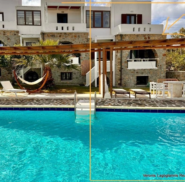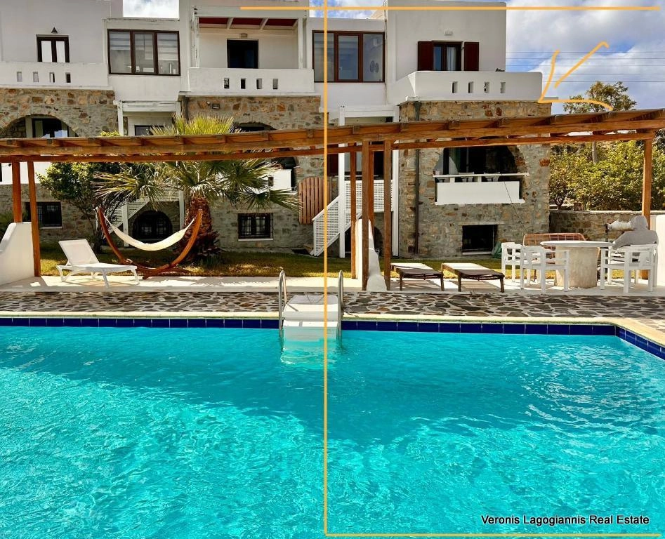 At Vivlos of Naxos, 4km far from the well known beach of Kastraki, there is for sale a maisonette of 120m2. It belongs to a complex of houses and offers unique view towards to the sea and the lowlands.